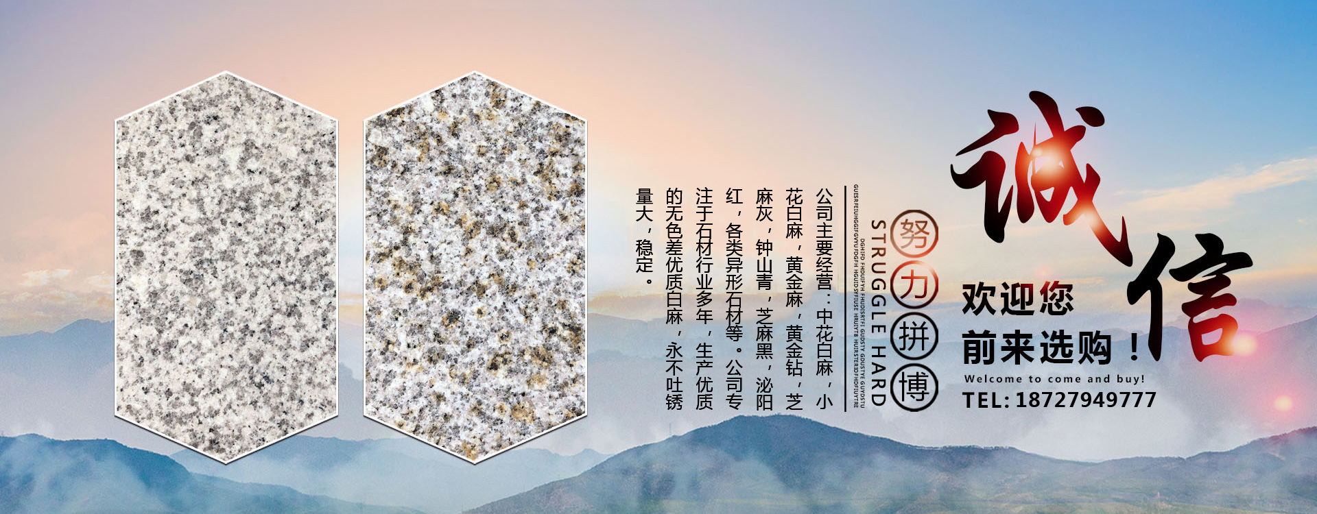 隨州市鑫順石材有限公司位于湖北省隨州市隨縣萬和鎮桐柏山。是一家集礦山開采、石材加工、異形制作、產品銷售為一體的大型綜合型石材企業!本公司主要經營:中花白麻,小花白麻,黃金麻,黃金鉆,芝麻灰,鐘山青,芝麻黑,泌陽紅,各類異形石材。生產的石材規格齊全、做工精細,被廣泛用于外墻干掛、廣場地鋪、市政園林、建筑工程、環境景觀異形石材等各類建筑墻體、地面的裝飾裝修。公司專注于石材行業多年,生產優質的無色差優質白麻,永不吐銹量大,穩定,主攻高鐵站,地鐵站,機場等大型市政房產。可承接各種異形加工,速度快,質量無憂。我們秉承“誠信經營,服務為本”的經營理念,竭誠為廣大客戶提供優質的產品和滿意服務,期待與您的合作,竭誠歡迎國內外新老客戶前來訂購洽談!
